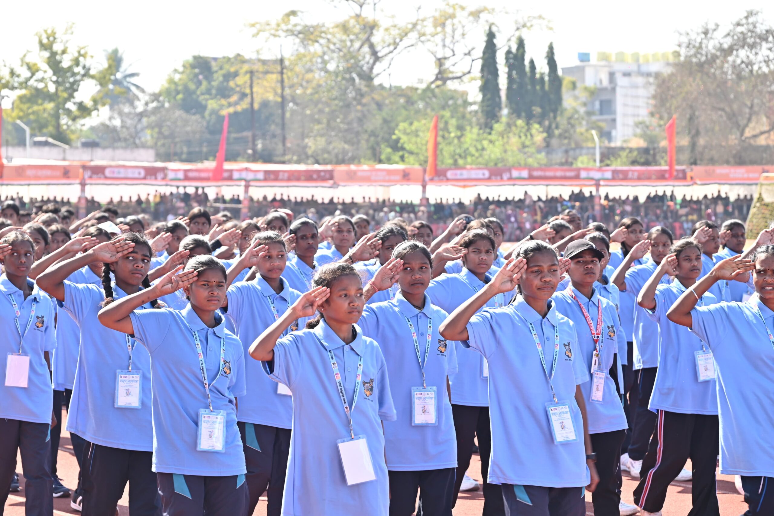 इसके बाद यह गौरवशाली मशाल सुकमा जिले के सुदूर अंचल पूवर्ती के प्रतिभावान खिलाड़ी विजय डोडी और नारायणपुर जिले के ओरछा ब्लॉक की निवासी सलोनी कवाची को सौंपा गया। कबड्डी खिलाड़ी विजय डोडी और खो-खो खिलाड़ी सलोनी कवाची ने पूरे उत्साह, ऊर्जा और गौरव के साथ ग्राउंड की परिक्रमा करते हुए मशाल को मुख्य प्रज्वलन स्थल तक पहुंचाया। यह क्षण सुकमा और नारायणपुर जिलों के लिए अत्यंत गौरवपूर्ण और भावनात्मक था – जब माओवाद-प्रभावित एवं दूरस्थ क्षेत्रों के खिलाड़ी आत्मविश्वास के साथ हजारों दर्शकों के सामने दौड़ रहे थे। दर्शकों का उत्साह भी इस दौरान चरम पर पहुंच गया।