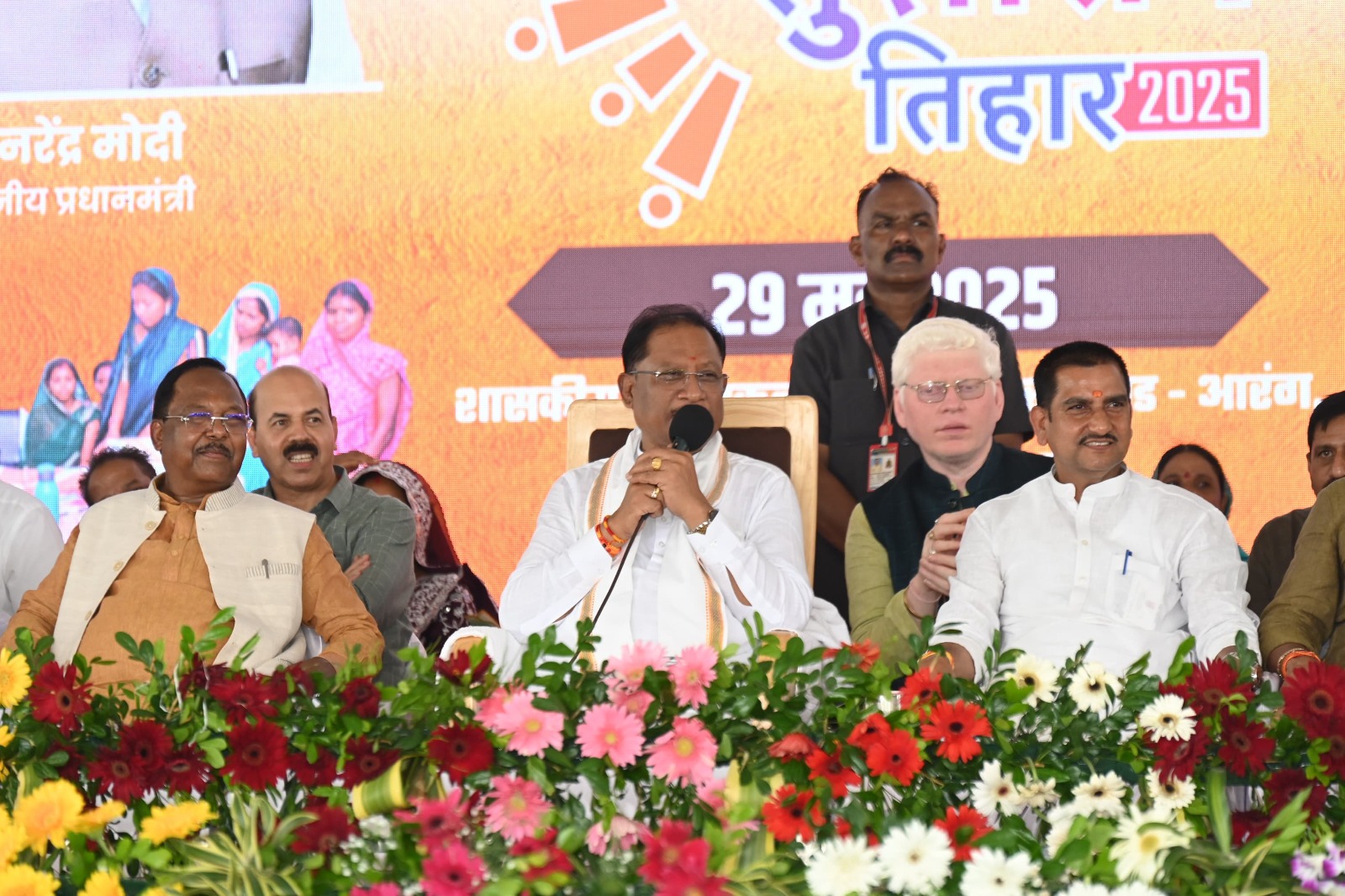 रायपुर 29 मई 2025/ मुख्यमंत्री श्री विष्णुदेव साय ने आज रायपुर जिले के ग्राम भैंसा में आयोजित सुशासन शिविर में भाग लिया। इस अवसर पर उन्होंने देशभर में प्रधानमंत्री श्री नरेंद्र मोदी के नेतृत्व में 29 मई से 12 जून तक चलने वाले “विकसित कृषि संकल्प अभियान” के लिए जागरूकता रथ को हरी झंडी दिखाकर शुभारंभ किया। उन्होंने प्रधानमंत्री आवास योजना के अंतर्गत निर्मित 110 पक्के मकानों की चाबियाँ हितग्राहियों को सौंपी।