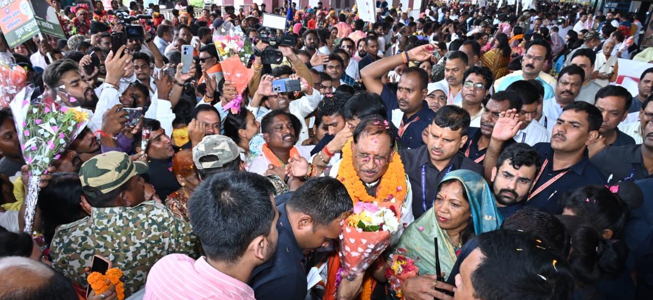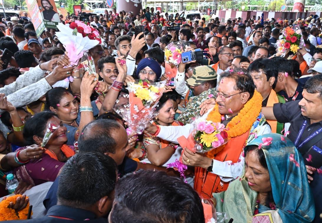 रायपुर, 30 अगस्त 2025/ अपनी आठ दिन के जापान और दक्षिण कोरिया के विदेश दौरे के बाद आज मुख्यमंत्री श्री विष्णु देव साय वापस रायपुर लौटे हैं। श्री साय के वापस लौटने पर आज एयरपोर्ट पर उनका भव्य स्वागत किया गया। छत्तीसगढ़ के पारंपरिक कर्मा और पंथी नृत्यों से पूरा एयरपोर्ट परिसर लगभग एक घंटे तक सराबोर रहा। लोगों की बड़ी संख्या में मौजूदगी ने मुख्यमंत्री श्री साय की लोकप्रियता और उनके विदेश दौरे की सफलता को स्वयं ही बयां कर दिया। मुख्यमंत्री का पुष्प गुच्छों से लेकर गजमाला तक से स्वागत किया गया। एयरपोर्ट के निकास द्वार से मीडिया गैलेरी तक लगभग 100 मीटर की दूरी तय करने में श्री साय को लगभग 15 मिनट लगे। इस दौरान लोगों ने पुष्प वर्षा से भी श्री साय का स्वागत किया। बाद में मुख्यमंत्री ने उपस्थित जनसमुदाय को सम्बोधित किया और इस भव्य स्वागत के लिए सभी का आभार जताया। मुख्यमंत्री ने कहा कि जापान और दक्षिण कोरिया दोनों ही देशों में बड़ा भारतीय समुदाय बसा हुआ है और हमारे छत्तीसगढ़ के लोग भी वहां पर व्यापारिक कार्यों में लगे हुए हैं। उनसे मिलकर मुझे बहुत अच्छा महसूस हुआ और यह लगा ही नहीं कि हम परदेश में हैं। उन्होंने कहा कि हमारे उद्यमी, हमारे कारोबारी पूरी दुनिया में फैले हुए हैं और भारत भूमि का नाम हर तरफ रोशन कर रहे हैं।