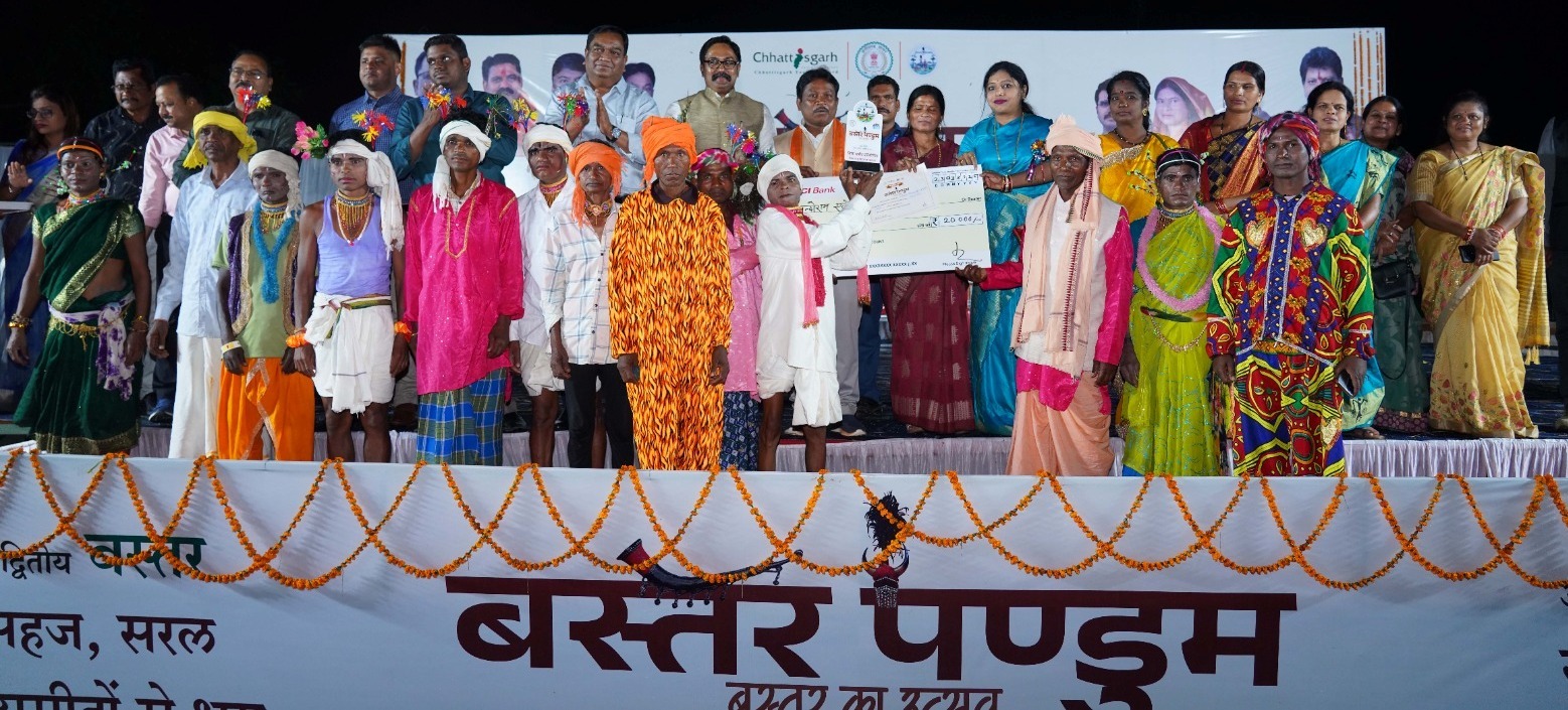 बस्तर पंडुम समापन अवसर पर जिला पंचायत अध्यक्ष श्रीमती वेदवती कश्यप ने कहा कि यह महोत्सव हमारी परंपराओं, रीति-रिवाजों और सांस्कृतिक धरोहर को संजोने का अवसर है। उन्होंने आदिवासी समाज की समृद्ध संस्कृति, लोककला और परंपराओं को बढ़ावा देने की आवश्यकता पर जोर दिया। साथ ही उन्होंने युवाओं से अपील की कि वे अपनी जड़ों से जुड़े रहें और बस्तर की अनूठी पहचान को आगे बढ़ाएं। बस्तर पंडुम बस्तर की संस्कृति, लोकनृत्य, परम्परा, हाट-बाजार और आदिवासी समाज की जीवनशैली को दर्शाने वाला एक प्रमुख आयोजन है। आरंभ में कलेक्टर श्री हरिस एस ने बताया कि जिले के सभी विकासखण्डों में ब्लॉक स्तरीय बस्तर पंडुम आयोजन के बाद चयनित करीब तीन हजार प्रतिभागियों ने इस जिला स्तरीय बस्तर पंडुम में पूरे उत्साह के साथ हिस्सा लिया। इस दौरान बस्तर की समृद्ध लोक संस्कृति, रीति-रिवाज, परम्परा, कला, खान-पान की अनोखी झलक देखने को मिली। जिसमें सर्व आदिवासी समाज प्रमुखों और सदस्यों, निर्णायकों ने सक्रिय सहयोग प्रदान किया। कार्यक्रम में लोक नाट्य कला में बकावंड विकासखंड विजेता रही, लोक वाद्ययंत्र में जगदलपुर विकासखंड को, लोक गीत में विवाह संस्कार गीत हेतु जगदलपुर को, जनजाति वेशभूषा में सोमा बघेल और साथी, लोक शिल्प कला में तोकापाल ब्लॉक, जनजाति पेय पदार्थ एवं व्यंजन हेतु हिंगलाजिन स्व-सहायता बकावंड और मंडई नाचा में दरभा ब्लॉक को पहला स्थान दिया गया। इस अवसर पर बस्तर के सामाजिक नेतृत्वकर्ता मांझी-चालकी, आदिवासी समाज के पदाधिकारियों सहित जिला प्रशासन के अधिकारी-कर्मचारी और बड़ी संख्या में ग्रामीणजन व गणमान्य नागरिक उपस्थित थे।