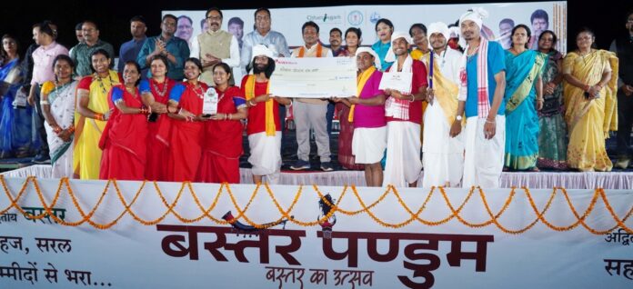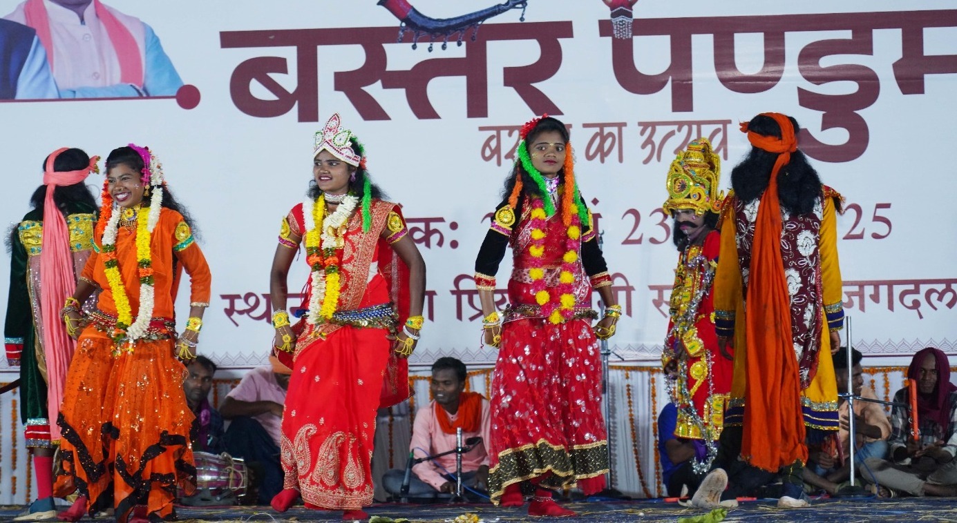 जगदलपुर । बस्तर पण्डुम-2025 के तहत दो दिवसीय जिला स्तरीय कार्यक्रम का समापन लोक संस्कृति की अनुपम छटा के साथ रविवार को स्थानीय प्रियदर्शिनी इंदिरा स्टेडियम में हुआ। इस अवसर पर सांसद बस्तर श्री महेश कश्यप, जिला पंचायत अध्यक्ष श्रीमती वेदवती कश्यप सहित अन्य जनप्रतिनिधियों और कमिश्नर बस्तर डोमन सिंह, आईजी सुंदरराज पी., कलेक्टर हरिस एस, एसपी शलभ सिन्हा, सीईओ जिला पंचायत प्रतीक जैन तथा सर्व आदिवासी समाज प्रमुखों ने समूचे जिले के प्रतिभागियों का उत्साहवर्धन किया। साथ ही विजयी प्रतिभागियों को पुरस्कृत कर संभाग स्तरीय बस्तर पंडुम में उत्कृष्ट प्रदर्शन करने की शुभकामनाएं दी। इस दौरान जिले के सभी ब्लॉकों के प्रतिभागियों ने जिला स्तरीय बस्तर पण्डुम में बारिश के बावजूद उत्साहपूर्वक भाग लिया।