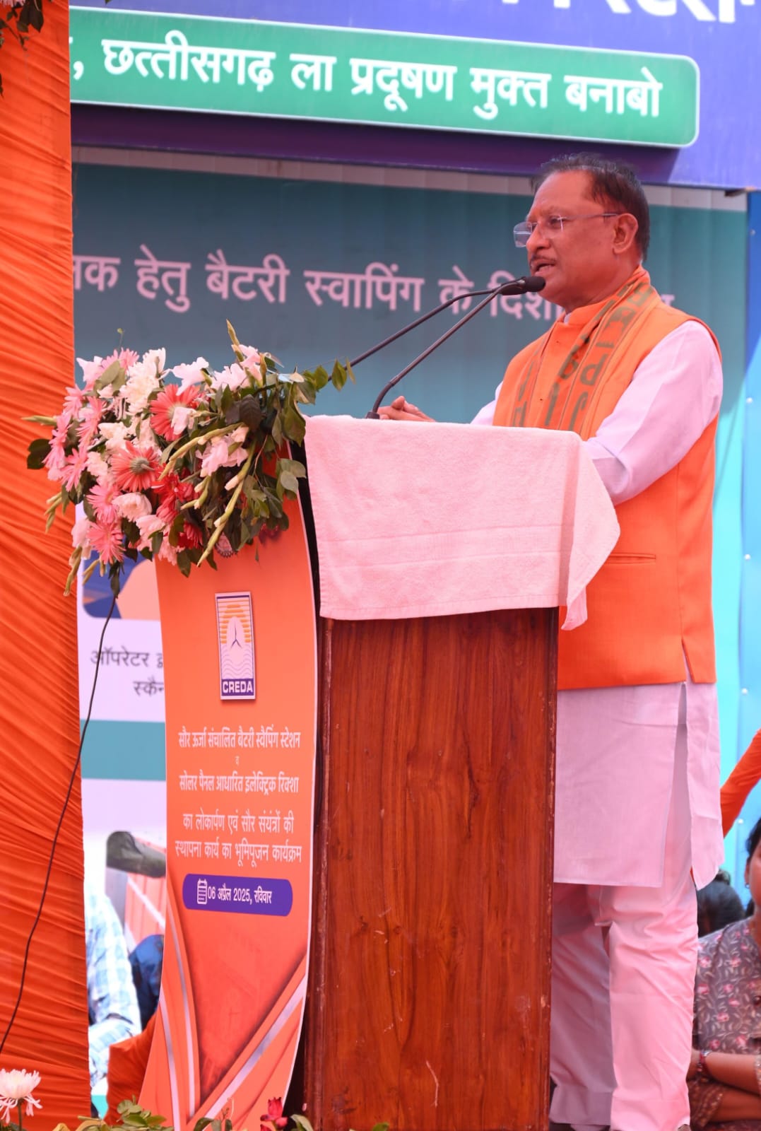 रायपुर । अक्षय ऊर्जा का अधिक से अधिक उपयोग स्वच्छ, सुरक्षित भविष्य की ओर ले जाएगा। बिजली आज की सबसे बड़ी आवश्यकता है और प्रधानमंत्री श्री नरेंद्र मोदी के नेतृत्व में देश में नवीकरणीय ऊर्जा के क्षेत्र में नए लक्ष्य तय किए गए हैं और इसे पूरा करने की दिशा में तेजी से काम हो रहा है। मुख्यमंत्री श्री विष्णु देव साय ने आज राजधानी रायपुर के क्रेडा कार्यालय परिसर में अक्षय ऊर्जा के क्षेत्र में 50 करोड़ रुपए से अधिक के विभिन्न विकास कार्यों का लोकार्पण व भूमिपूजन कर कार्यक्रम को संबोधित किया। इस दौरान उन्होंने सौर ऊर्जा संचालित बैटरी स्वैपिंग स्टेशन और सामान्य से सौर ऊर्जा में परिवर्तित ई रिक्शा का लोकार्पण भी किया।