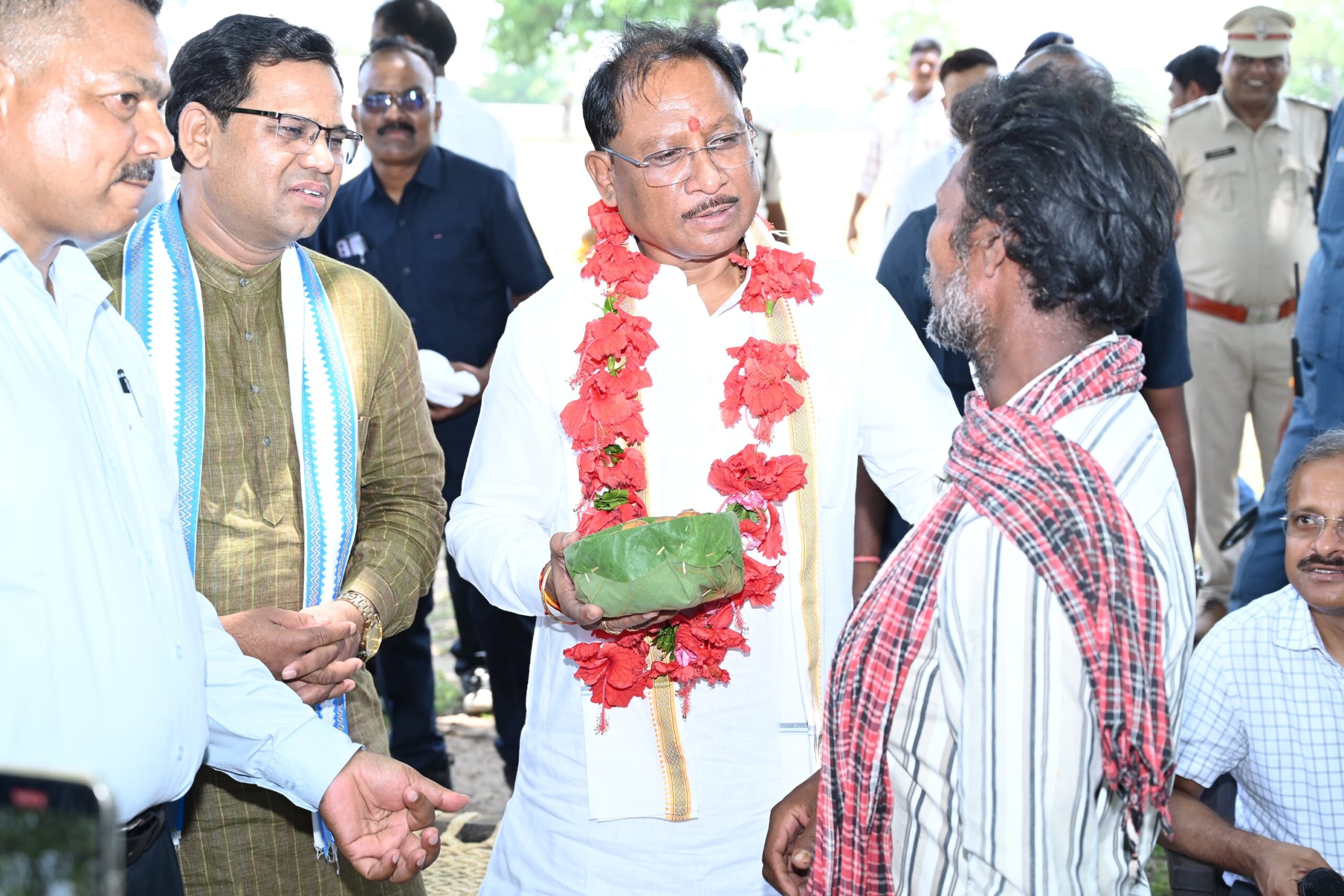 बैगा समुदाय के ग्राम प्रमुख ने मुख्यमंत्री को गुलमोहर की माला पहनाकर उनका स्वागत किया और बैगा ग्रामीण रैता बैगा ने तेंदू फल से भरी टोकरी देकर मुख्यमंत्री का गांव में आने के लिए आभार प्रकट किया। मुख्यमंत्री विष्णु देव साय ने वहां उपस्थित ग्रामीणों से शासकीय योजनाओं के बारे में पूछा। इस दौरान ग्रामीणों की शिकायत पर पीएचई विभाग के सब इंजीनियर को मुख्यमंत्री ने जमकर फटकार भी लगाई। मुख्यमंत्री ने कहा कि या तो काम करो या फिर सस्पेंड होने के लिए तैयार रहो। श्री साय ने इस दौरान पानी टंकी से ओवरफ्लो हो रहे पानी को देखकर पानी की बरबादी करने पर भी नाराजगी जाहिर की।