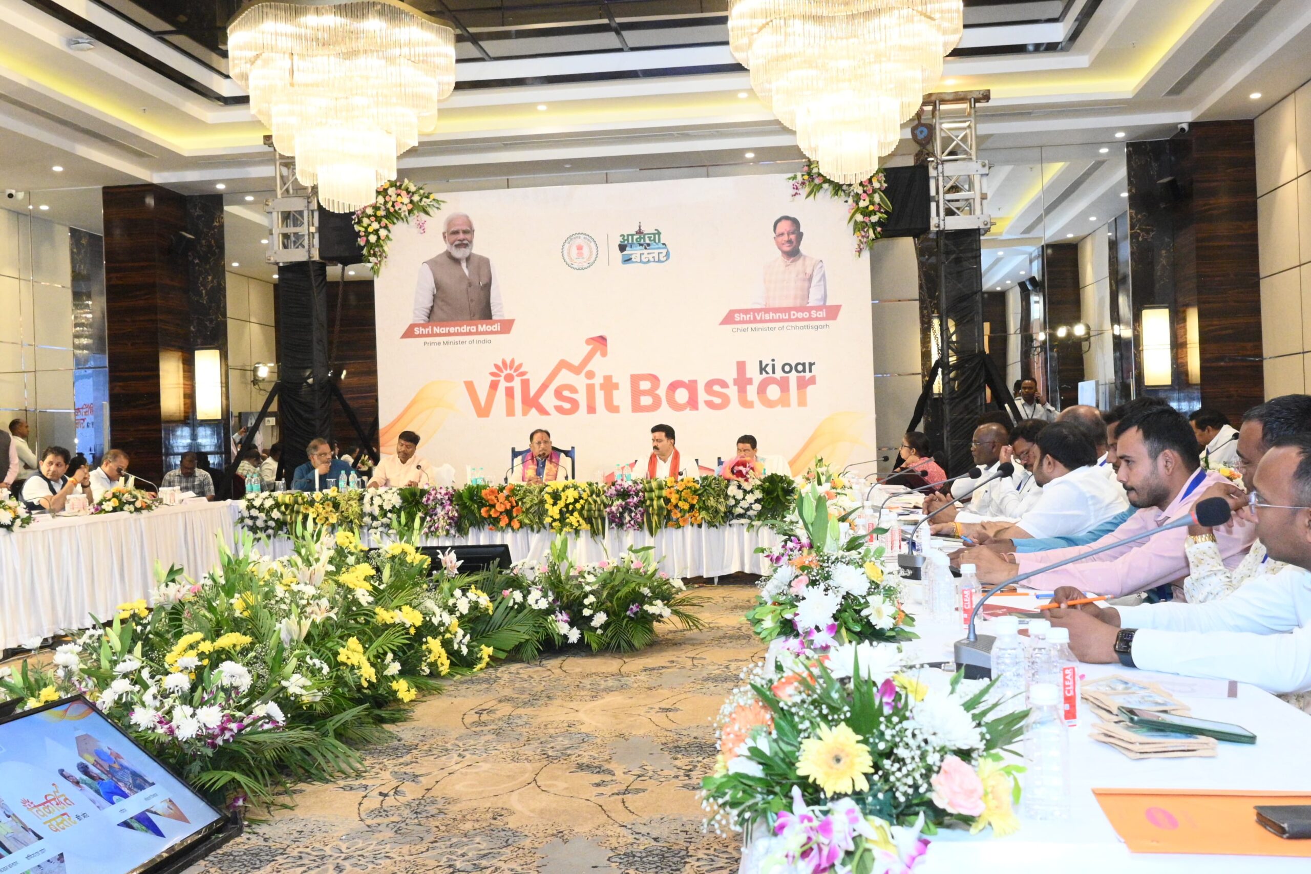 रायपुर। मुख्यमंत्री श्री विष्णुदेव साय की अध्यक्षता में आज जगदलपुर में “विकसित बस्तर की ओर” विषय पर एक महत्वपूर्ण परिचर्चा का आयोजन किया गया। इस अवसर पर कृषि विकास एवं किसान कल्याण विभाग द्वारा बस्तर क्षेत्र के समग्र विकास हेतु विस्तृत रोडमैप प्रस्तुत किया गया। जगदलपुर में आयोजित बस्तर की ओर परिचर्चा में उप मुख्यमंत्री श्री विजय शर्मा, वन मंत्री श्री केदार कश्यप, सांसद श्री महेश कश्यप, विधायक श्री किरण सिंह देव, श्री विनायक गोयल, प्रमुख सचिव श्री सुबोध कुमार सिंह, मुख्यमंत्री के सचिव श्री राहुल भगत, संबंधित विभागों के सचिव, बस्तर संभाग के सभी जिलों के कलेक्टर समेत बस्तर संभाग के किसान, कृषि उद्योग से जुड़े गणमान्य स्थानीय उपस्थित थे। इस अवसर पर किसानों, व्यापरियों कृषि से सम्बंधित संस्थाओं के प्रतिनिधियों ने अपने विचार व्यक्त किये।