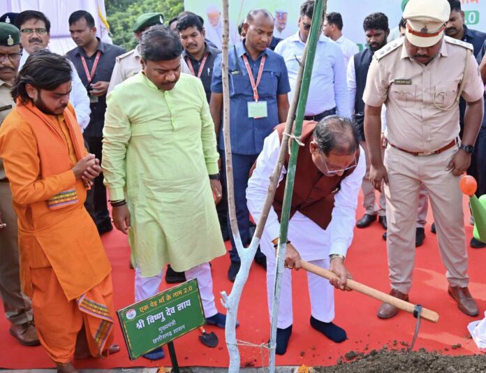 रायपुर, 14 जुलाई 2025/ मुख्यमंत्री श्री विष्णु देव साय ने आज नवा रायपुर स्थित नवीन विधानसभा परिसर में विधिवत पूजा-अर्चना कर गुलमोहर का पौधा रोपित किया। मुख्यमंत्री श्री साय ‘एक पेड़ मां के नाम 2.0’ वृक्षारोपण कार्यक्रम में सम्मिलित हुए।