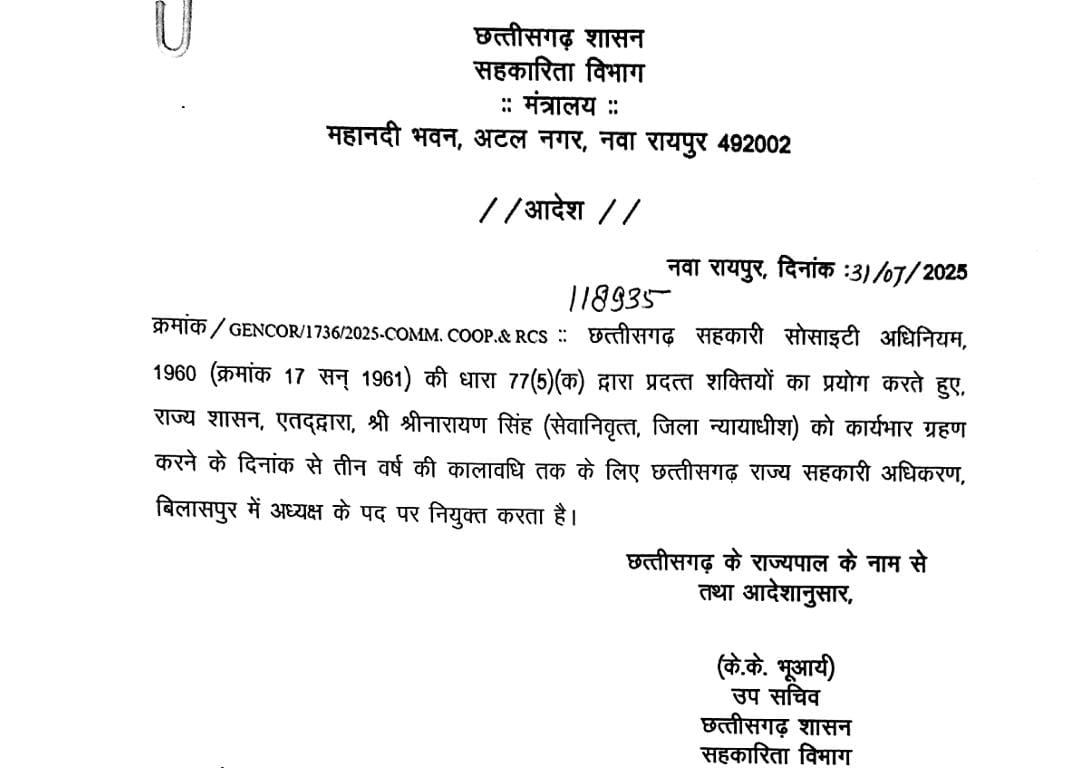 रायपुर, 1 अगस्त 2025/ छत्तीसगढ़ को रेल सेवाओं के क्षेत्र में एक और बड़ी सौगात मिलने जा रही है। भारत सरकार के रेल मंत्री श्री अश्विनी वैष्णव ने मुख्यमंत्री श्री विष्णुदेव साय को पत्र लिखकर सूचित किया है कि रायपुर-जबलपुर नई एक्सप्रेस ट्रेन को 3 अगस्त 2025 को हरी झंडी दिखाई जाएगी।