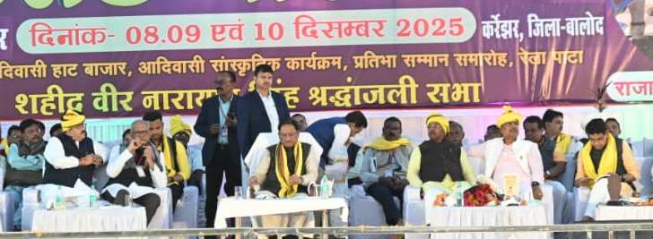 रायपुर, 10 दिसंबर 2025/ मुख्यमंत्री श्री विष्णु देव साय ने कहा कि राष्ट्र व समाज के नव निर्माण में आदिवासी समाज के अमर शहीदों एवं महापुरूषों का अद्वितीय योगदान है। उन्होंने कहा कि जब-जब राष्ट्र व समाज पर विपत्ति आई है, आदिवासी समाज ने उनका डटकर मुकाबला कर विघटनकारी तत्वों को मुहतोड़ जवाब दिया है। मुख्यमंत्री श्री साय आज बालोद जिले के गुरूर विकासखंड के ग्राम कर्रेझर में आयोजित विराट वीर मेला महोत्सव को सम्बोबिधत कर रहे थे। मुख्यमंत्री श्री साय ने तीन दिवसीय विराट वीर मेला के अंतिम दिवस पर आयोजित शहीद वीर नारायण सिंह श्रद्धांजलि सभा में शामिल होकर अमर शहीद वीरनारायण सिंह को विनम्र श्रद्धांजलि दी।