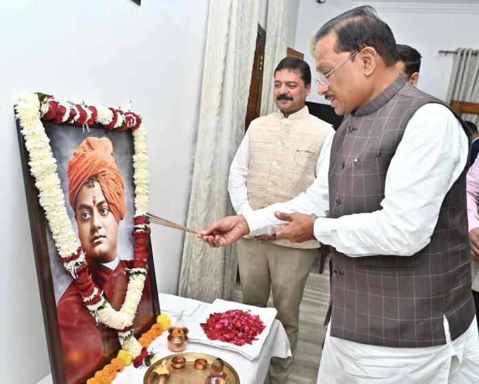 रायपुर 12 जनवरी 2026/मुख्यमंत्री श्री विष्णु देव साय ने आज स्वामी विवेकानंद की जयंती के अवसर पर मुख्यमंत्री निवास में स्वामी विवेकानंद के छायाचित्र पर पुष्प अर्पित कर श्रद्धांजलि दी और ‘राष्ट्रीय युवा दिवस’ के मौके पर प्रदेश के युवाओं को हार्दिक शुभकामनाएँ दीं। उन्होंने कहा कि स्वामी विवेकानंद का जीवन और विचार आज भी भारत की युवाशक्ति के लिए ऊर्जा, दिशा और आत्मविश्वास का सबसे बड़ा स्रोत हैं।