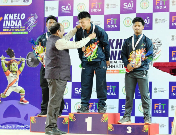 रायपुर: उप मुख्यमंत्री तथा खेल एवं युवा कल्याण मंत्री श्री अरुण साव आज रायपुर के पंडित रविशंकर विश्वविद्यालय मैदान पहुंचकर खेलो इंडिया ट्राइबल गेम्स के अंतर्गत आयोजित वेट-लिफ्टिंग स्पर्धा देखने पहुंचे। उन्होंने विभिन्न प्रदेशों से आए खिलाड़ियों से मिलकर उनकी हौसला अफजाई भी की। श्री साव ने आज के वेट-लिफ्टिंग स्पर्धा के विजेताओं को पदक भी वितरित किए। खेल एवं युवा कल्याण विभाग के सचिव श्री यशवंत कुमार भी इस दौरान मौजूद थे।