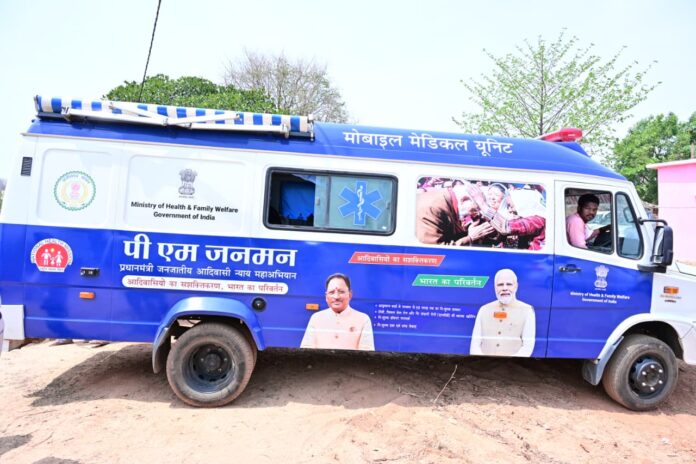 रायपुर: राज्यपाल श्री रमेन डेका ने आज जशपुर जिले के कुनकुरी विकासखंड के ग्राम बेहराखार में पीएम जनमन योजना अंतर्गत संचालित मोबाइल मेडिकल यूनिट का अवलोकन किया। इस दौरान उन्होंने यूनिट में उपलब्ध स्वास्थ्य सुविधाओं की जानकारी ली। मोबाइल मेडिकल यूनिट में ऑक्सीजन सिलेंडर, सीवीसी मशीन, आवश्यक दवाइयों सहित विभिन्न उपचार उपकरण उपलब्ध हैं। साथ ही इसमें डॉक्टर, नर्स एवं पैरामेडिकल स्टाफ की टीम भी तैनात रहती है, जो दूरस्थ क्षेत्रों में जाकर स्वास्थ्य सेवाएं प्रदान करती है।