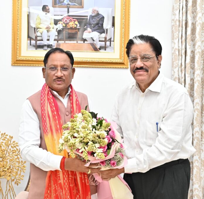 रायपुर: मुख्यमंत्री श्री विष्णुदेव साय से मुख्यमंत्री निवास कार्यालय में राज्य नीति आयोग, छत्तीसगढ़ के नवनियुक्त उपाध्यक्ष श्री गणेश शंकर मिश्रा ने सौजन्य मुलाकात की। मुख्यमंत्री श्री साय ने श्री मिश्रा को राज्य नीति आयोग के उपाध्यक्ष नियुक्त होने पर बधाई देते हुए पदेन दायित्वों के कुशलतापूर्वक निर्वहन के लिए शुभकामनाएं दीं।