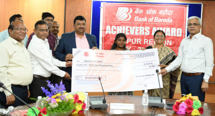 रायपुर: इंदिरा गांधी कृषि विश्वविद्यालय, रायपुर के तीन मेधावी छात्रों को 12 मार्च 2026 को कृषि महाविद्यालय, रायपुर के सेमिनार हॉल में आयोजित एक समारोह में बैंक ऑफ बड़ौदा द्वारा अचीवर्स अवॉर्ड से सम्मानित किया गया। इस अवसर पर अपने-अपने शैक्षणिक वर्षों में कक्षा में सर्वोच्च स्थान प्राप्त करने वाले विद्यार्थियों को सम्मानित किया गया। सम्मानित विद्यार्थियों में कृषि महाविद्यालय एवं अनुसंधान केंद्र, साजा (बेमेतरा) की प्रथम वर्ष की छात्रा दिलेश्वरी साहू, शहीद गुंडाधूर कृषि महाविद्यालय एवं अनुसंधान केंद्र, जगदलपुर के द्वितीय वर्ष के छात्र देविदत्त जेना तथा कृषि महाविद्यालय, रायपुर की तृतीय वर्ष की छात्रा अनुष्का चौरसिया शामिल थीं। कार्यक्रम में प्रत्येक विद्यार्थि को 31,000 रुपये की नकद पुरस्कार राशि प्रदान की गई।